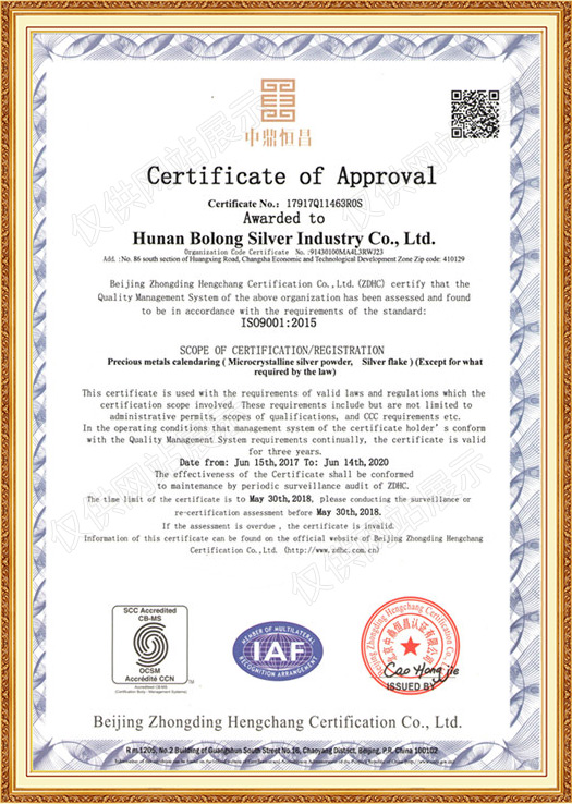 波隆銀業客戶遍布江蘇、浙江、上海、安徽、河北、廣東、陜西等地。公司擁有微銀粉和片狀銀粉兩大類、八個品種,可滿足薄膜開關、柔性線路、防靜電包裝、太陽能背銀、導電膠、觸摸屏、ICC集成電路、電容器、電極、壓敏陶瓷等方面銀漿需要。