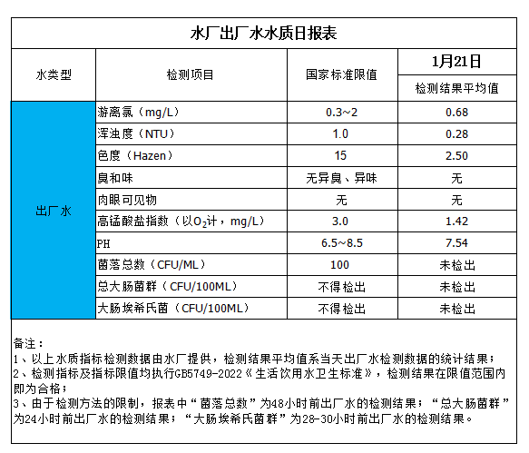 水廠出廠水水質(zhì)日報(bào)表(2024-1-21)
