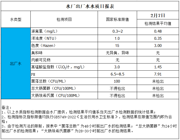 水廠出廠水水質(zhì)日報(bào)表(2025-2-7)