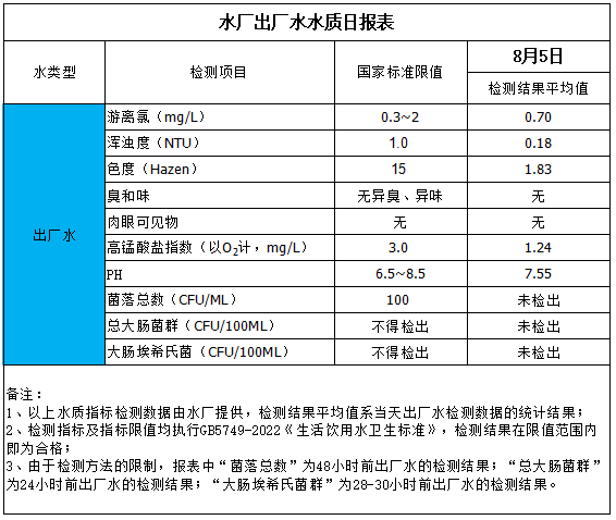 水廠出廠水水質(zhì)日報(bào)表(2025-8-5)