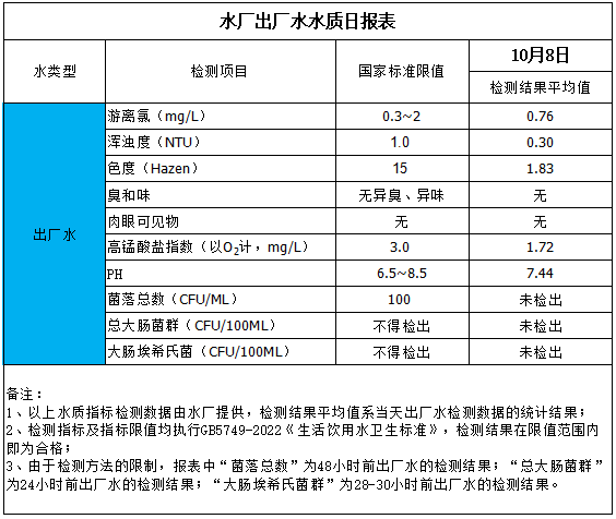 水廠出廠水水質(zhì)日報(bào)表(2025-10-8)