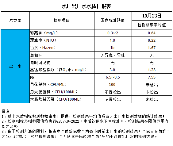 水廠出廠水水質(zhì)日?qǐng)?bào)表(2025-10-23)
