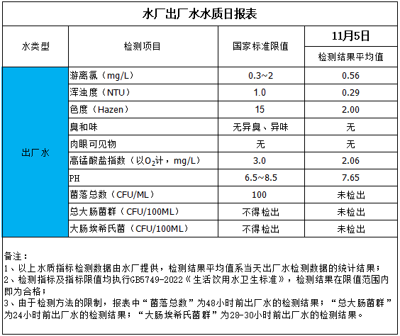 水廠出廠水水質(zhì)日?qǐng)?bào)表(2025-11-5)