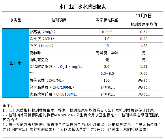 水廠出廠水水質(zhì)日?qǐng)?bào)表(2025-11-7)
