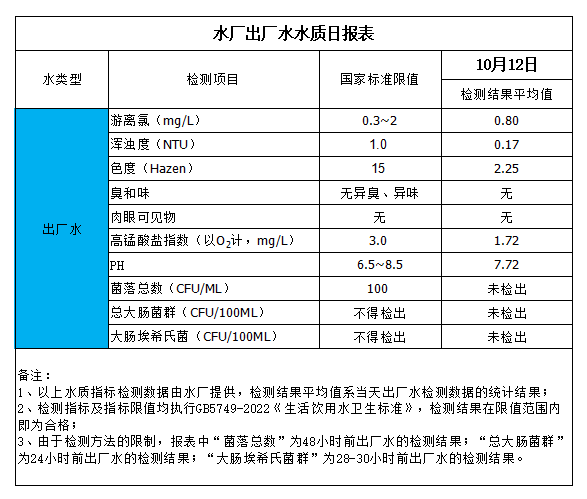 水廠出廠水水質日報表(2023-10-12)