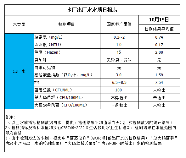 水廠出廠水水質日報表(2023-10-19)