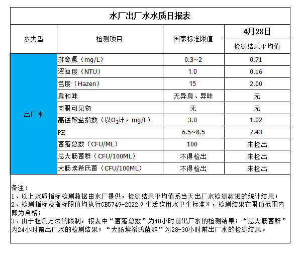 水廠出廠水水質日報表(2024-4-28)