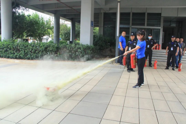 除了消防水帶、消防軟管,滅火器也是突遇火情最有力的“武器”。培訓中,采取分部門分時段的形式,由消防專員詳細講解、演示滅火器使用方法:做到“一看二搖三拉四握五壓六噴”。隨后大家逐一體驗,現場進行了滅火演練。